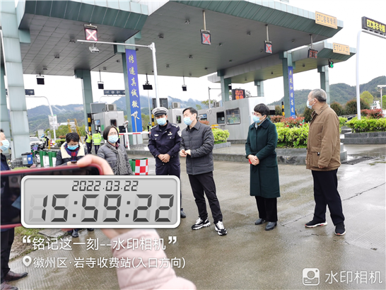 张伟一行先后来到呈坎景区、龙山山庄、岩寺高速口健康志愿服务点、好又多超市实地督导检查疫情防控工作落实情况。